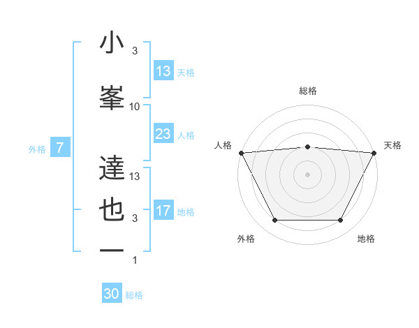 小峯 達也一さんの天格は13画の5点!
