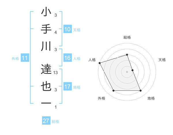 小手川 達也一さんを姓名の画数から五運を鑑定