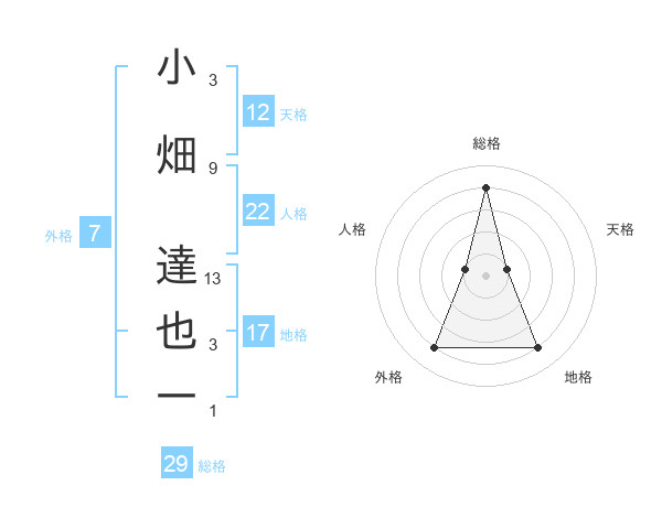 小畑 達也一さんの総格は29画の4点!