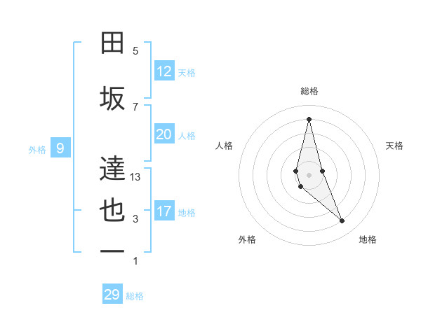 田坂 達也一さんを姓名の画数から五運を鑑定