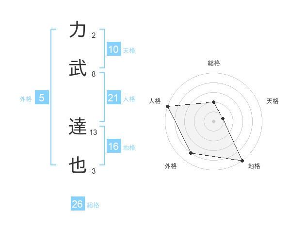 力武 達也さんを姓名の画数から五運を鑑定