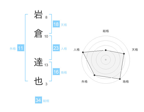 岩倉 達也さんを姓名の画数から五運を鑑定