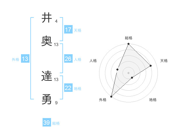 井奥 達勇さんを姓名の画数から五運を鑑定