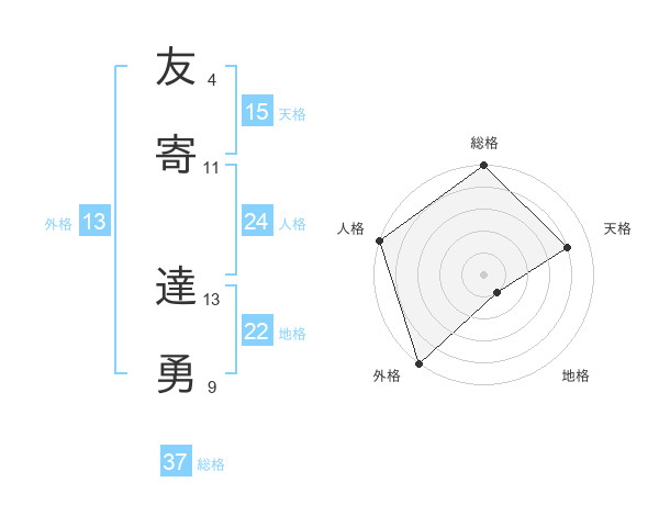 友寄 達勇さんの総格は37画の5点!