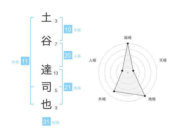土谷 達司也さんを姓名の画数から五運を鑑定