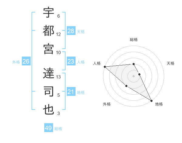 宇都宮 達司也さんを姓名の画数から五運を鑑定
