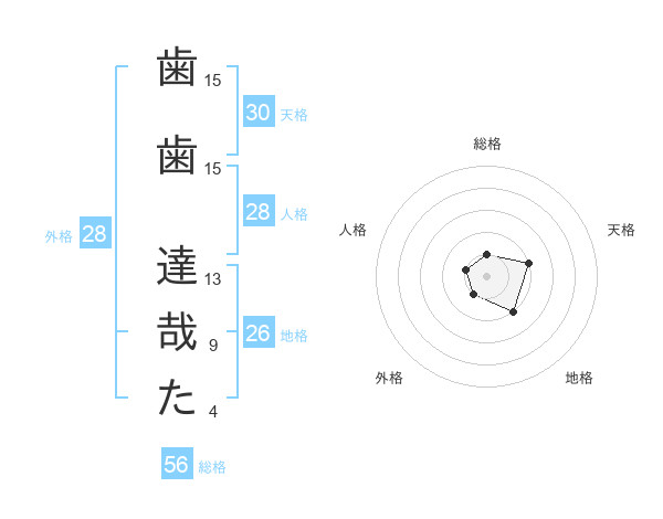 歯歯 達哉たさんを姓名の画数から五運を鑑定