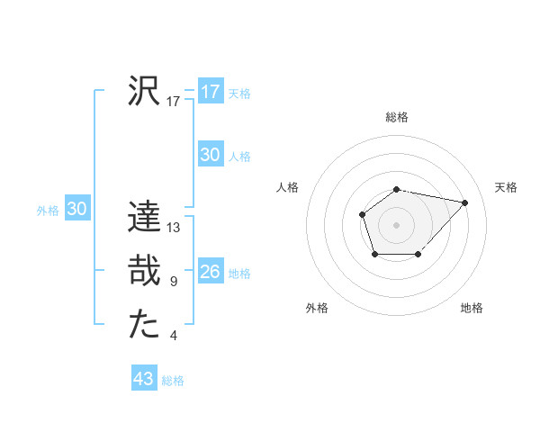 沢 達哉たさんを姓名の画数から五運を鑑定