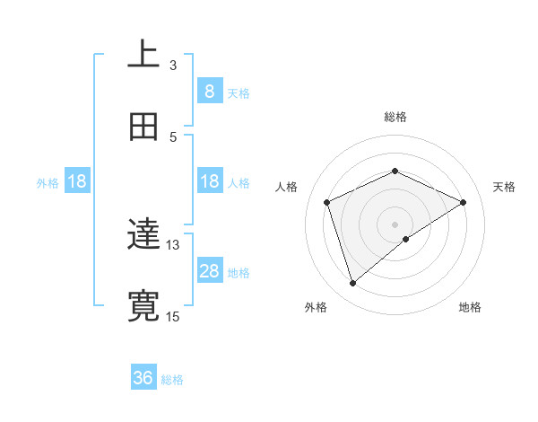 上田 達寛さんの総格は36画の3点!