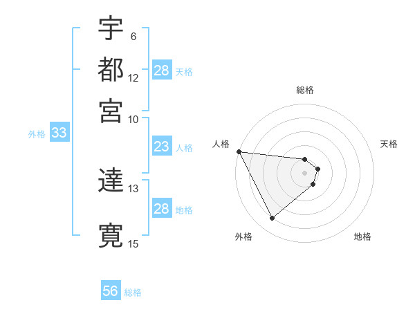 宇都宮 達寛さんを姓名の画数から五運を鑑定