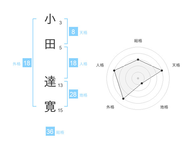 小田 達寛さんの総格は36画の3点!