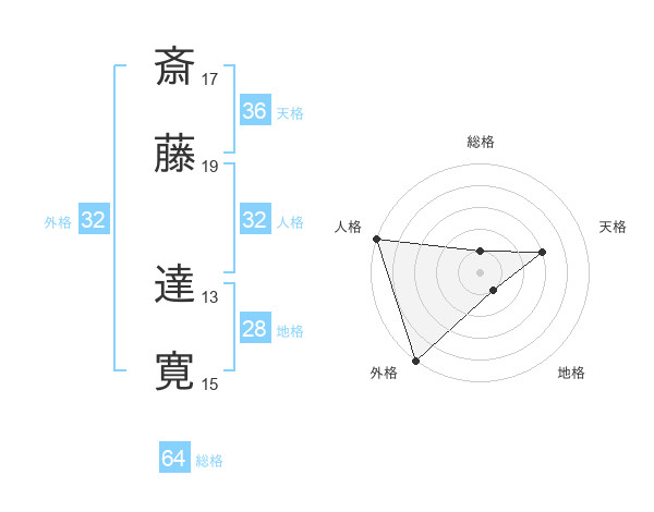 斎藤 達寛さんを姓名の画数から五運を鑑定