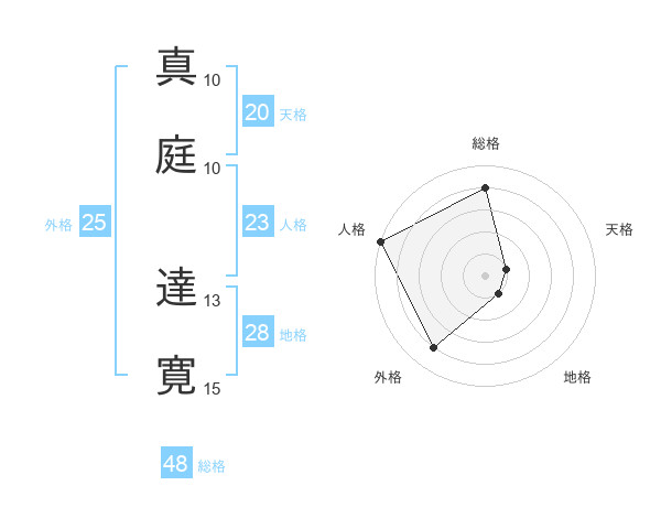 真庭 達寛さんの総格は48画の4点!