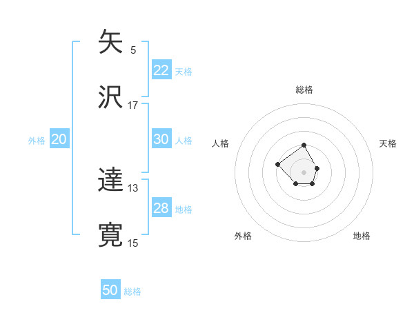 矢沢 達寛さんを姓名の画数から五運を鑑定