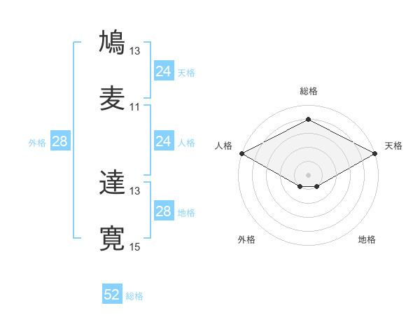 鳩麦 達寛さんを姓名の画数から五運を鑑定