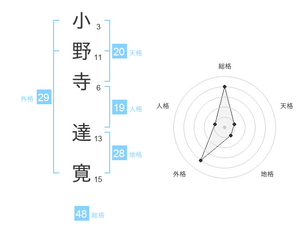 小野寺 達寛さんの総格は48画の4点!