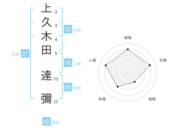 上久木田 達彌さんを姓名の画数から五運を鑑定