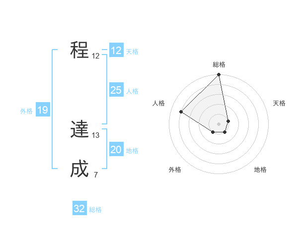 程 達成さんの総格は32画の5点!