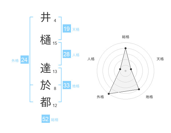 井樋 達於都さんの総格は52画の4点!