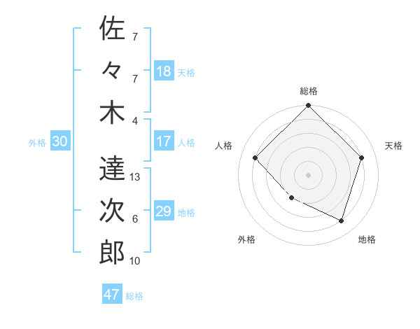 佐々木 達次郎さんを姓名の画数から五運を鑑定