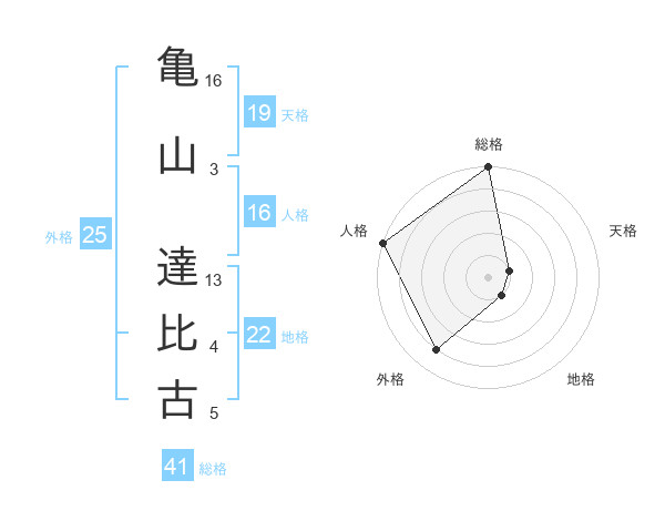 亀山 達比古さんの総格は41画の5点!