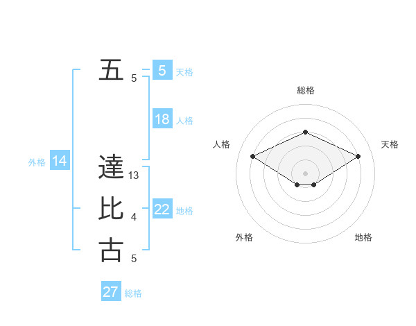 五 達比古さんの天格は5画の4点!