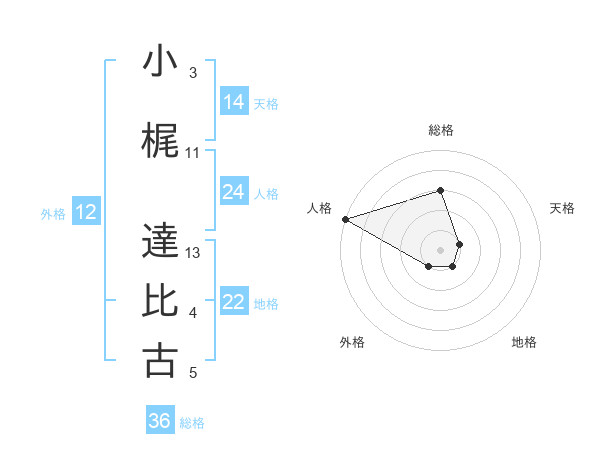 小梶 達比古さんを姓名の画数から五運を鑑定