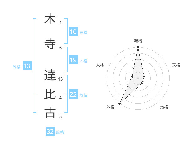 木寺 達比古さんの総格は32画の5点!
