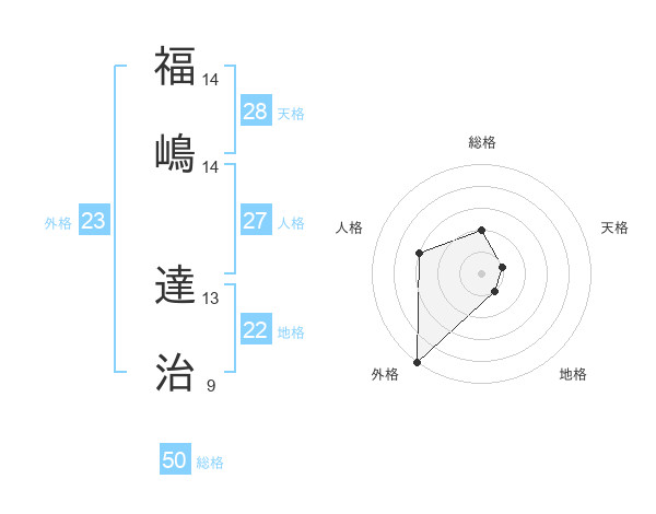 福嶋 達治さんを姓名の画数から五運を鑑定
