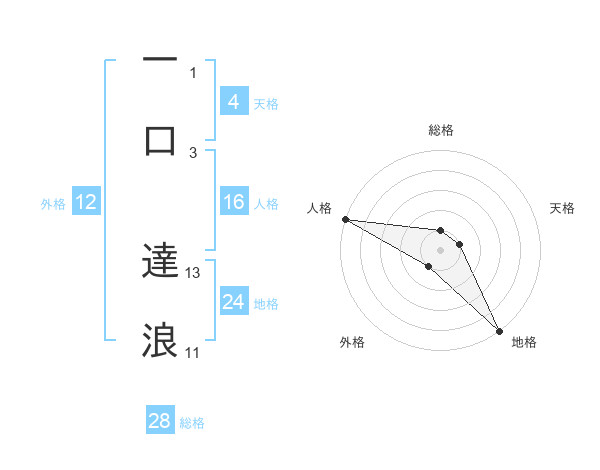 一口 達浪さんの総格は28画の1点!