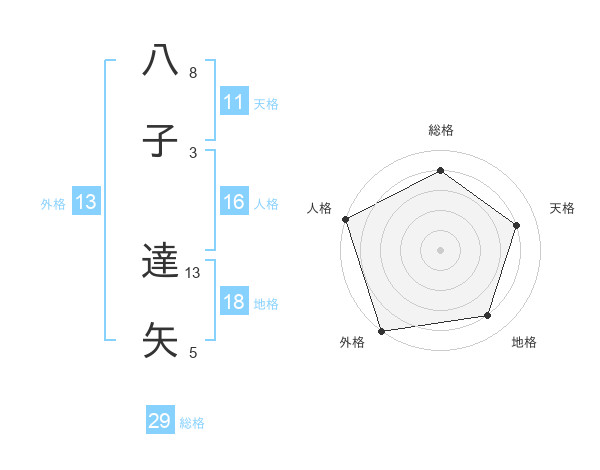 八子 達矢さんの総格は29画の4点!