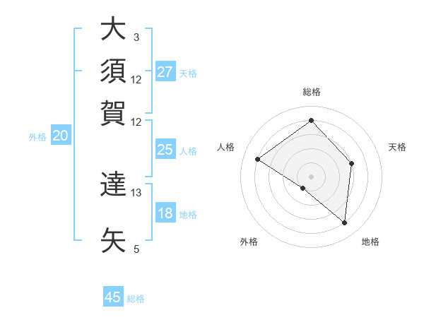 大須賀 達矢さんを姓名の画数から五運を鑑定