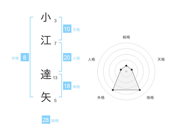 小江 達矢さんの総格は28画の1点!