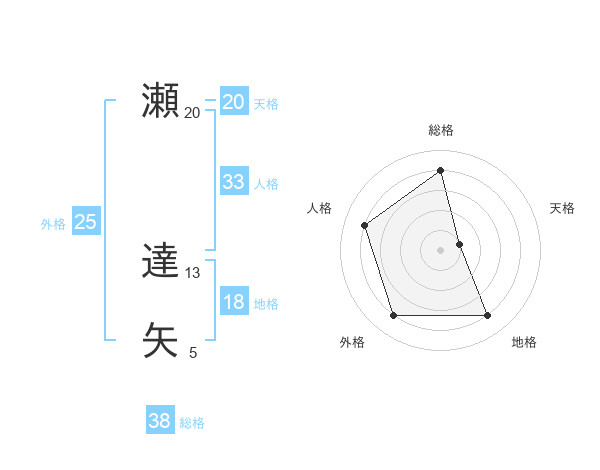瀬 達矢さんを姓名の画数から五運を鑑定