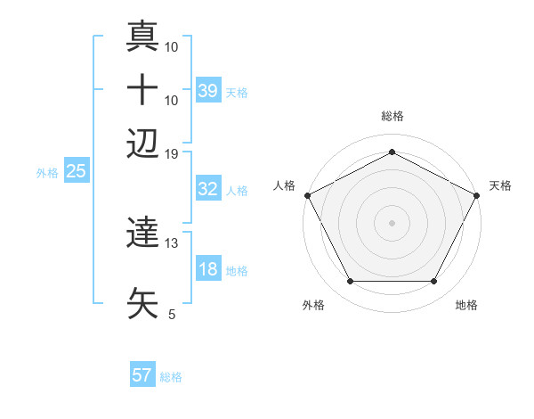 真十辺 達矢さんを姓名の画数から五運を鑑定