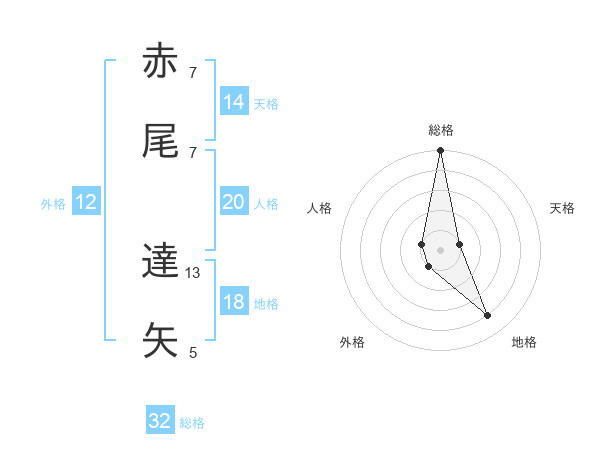 赤尾 達矢さんを姓名の画数から五運を鑑定