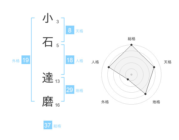 小石 達磨さんの総格は37画の5点!