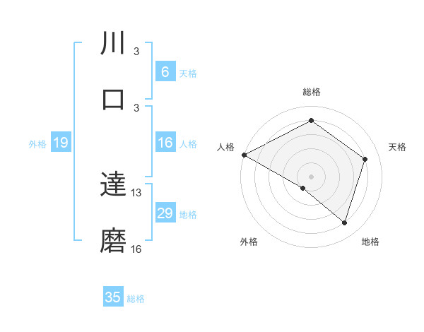 川口 達磨さんの総格は35画の4点!