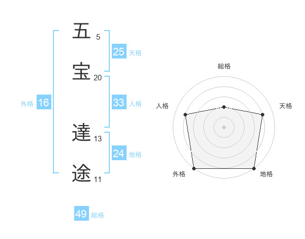五宝 達途さんの総格は49画の2点!
