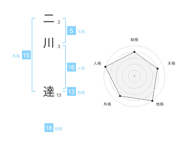 二川 達さんの地格は13画の5点!