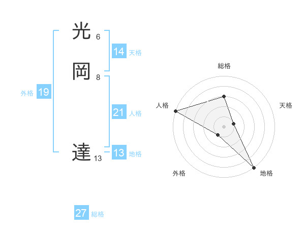 光岡 達さんの地格は13画の5点!