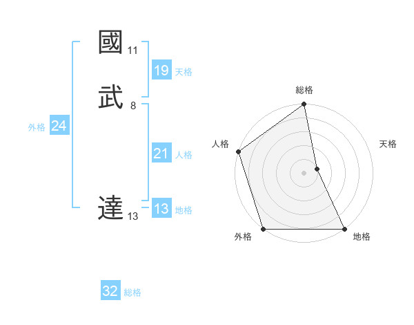 國武 達さんの地格は13画の5点!