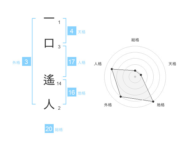 一口 遙人さんの総格は20画の1点!