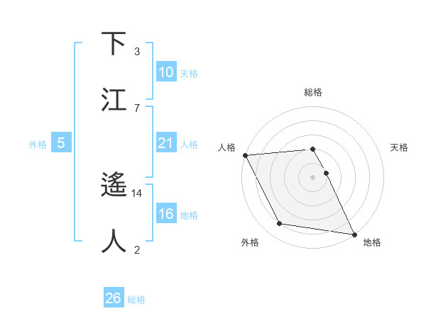 下江 遙人さんの総格は26画の2点!
