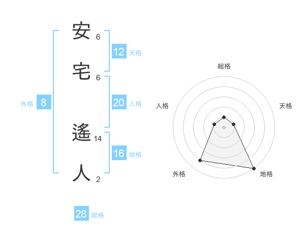 安宅 遙人さんの天格は12画の1点!