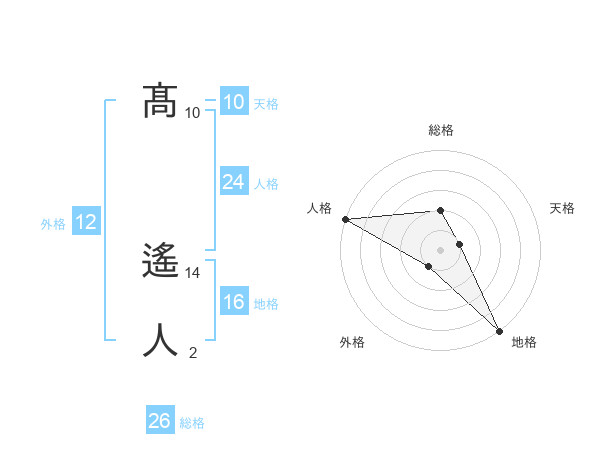 髙 遙人さんの総格は26画の2点!