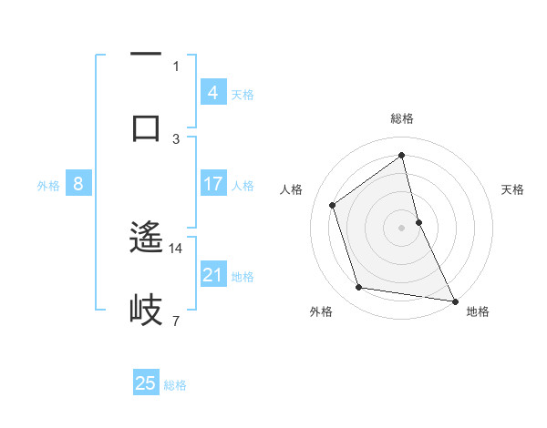 一口 遙岐さんの総格は25画の4点!