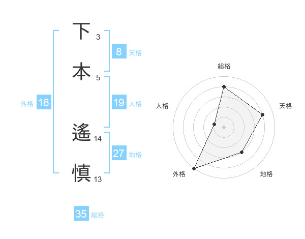 下本 遙慎さんの総格は35画の4点!