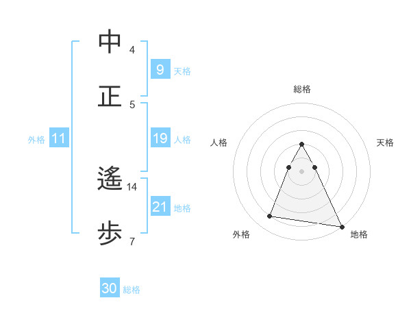 中正 遙歩さんの総格は30画の2点!
