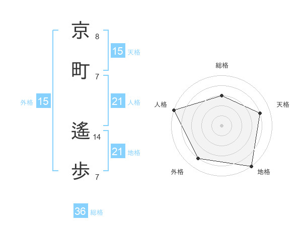 京町 遙歩さんの天格は15画の4点!